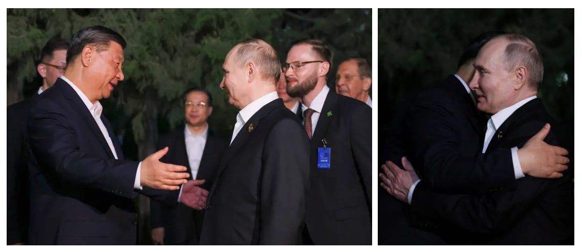 Xi and Putin exchange an unusual hug in Beijing during Putin’s State Visit last week. I think it is clear that the relationship between Putin and Xi is closer than any relationship that the U.S. President has with an American Ally.