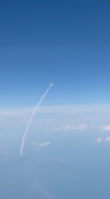 That feeling of optimism hit me when I saw this video, captured by someone on their smartphone out the window of an American Airlines passenger jet of the Artemis II launch from Cape Canaveral.