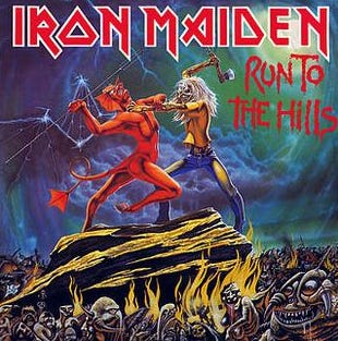 Cover of Iran Maiden’s single, “Run to the Hills,” from the album The Number of the Beast released in 1982.