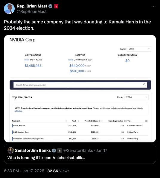 Then pointing out the campaign contributions Nvidia made during the 2024 election.